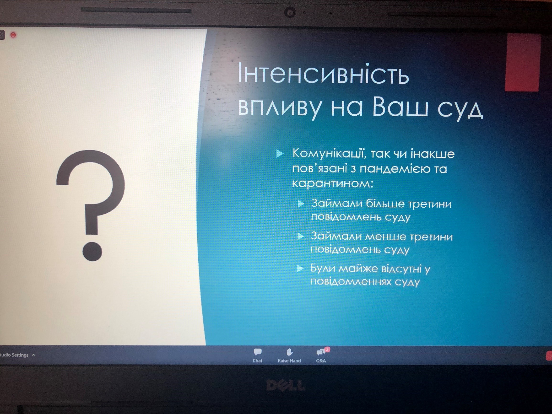 У ході вебінару тренер розповіла про те, які корективи вносить карантин у комунікацію. Проаналізувала та порівняла основні світові й українські тренди, надала рекомендації та підказки для побудови ефективної комунікації під час кризових ситуацій, наповнення повідомлень суду.